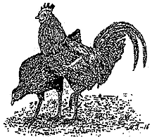 Nykykanamme polveutuvat Intian viidakoissa elävistä punaisista viidakkokanoista, joita myös Bankiva-kana edustaa. (kuva Mikko Ilkka 1916, kirjasta Uusi kanahoitokirja 1934) |